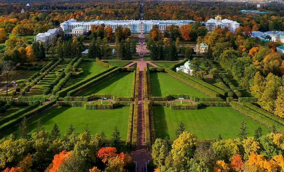 Главная достопримечательность Царского Села — Екатерининский дворец. Его фасад длиной более 300 метров, украшенный бело-голубыми колоннами и золотыми элементами, поражает с первого взгляда. Внутри — Янтарная комната, восстановленная с ювелирной точностью, а также Золотая анфилада, залы с лепниной, паркетом и живописью.