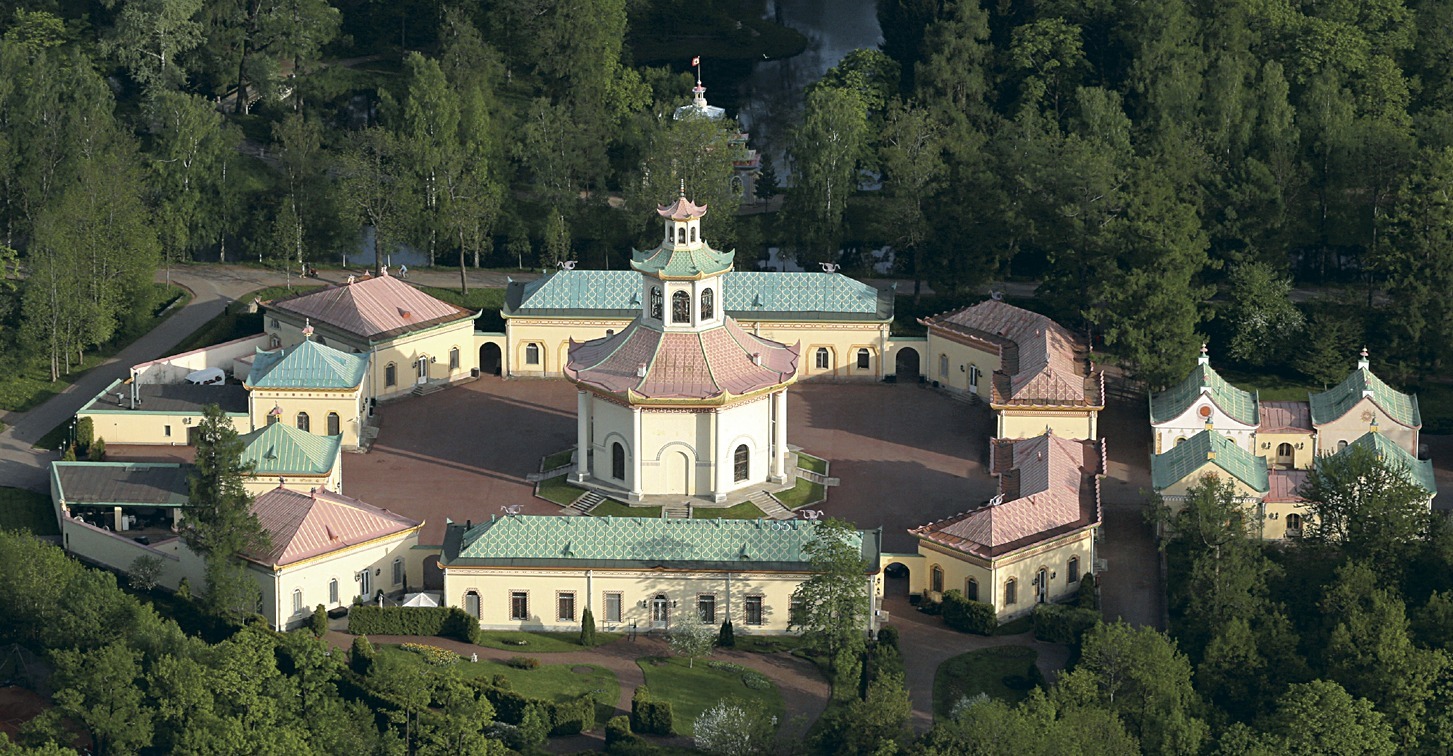 Экзотический уголок с пагодами, мостиками и павильонами в стиле шинуазри. Отличное место для фото и неспешной прогулки.